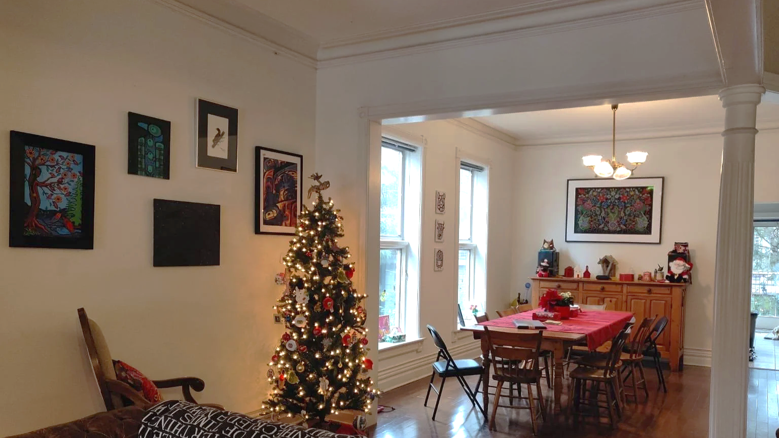 Our favourite large-scale consultation was a home décor consult for a heritage home in Cabbagetown. We began with finding the perfect vintage poster from Bata Shoe Museum for their entryway. Then, we designed a family room gallery wall featuring original, bird-themed Indigenous paintings. The room’s statement piece was the family’s large signed giclée print of Cristi Belcourt’s This Painting is a Mirror. We consulted on the framing with anti-reflective gallery glass with the help of the wonderful team at 99 Frames. The result allows the artwork to be visible as soon as one enters the home, but without reflecting the (admittedly fabulous) view of Riverdale Farm outside. Seeing the family entertain over the holidays in their newly decorated space was a beautiful way to close out the year.